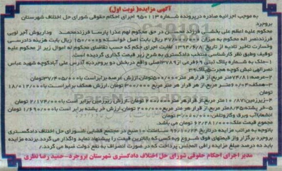 مزایده ملک مساحت عرصه 74.81متر نوبت اول کلاسه 950113
