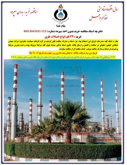 برای شرکت در مناقصه حتما از تصویر آگهی در سایت پارس نماد داده ها استفاده نمایید
