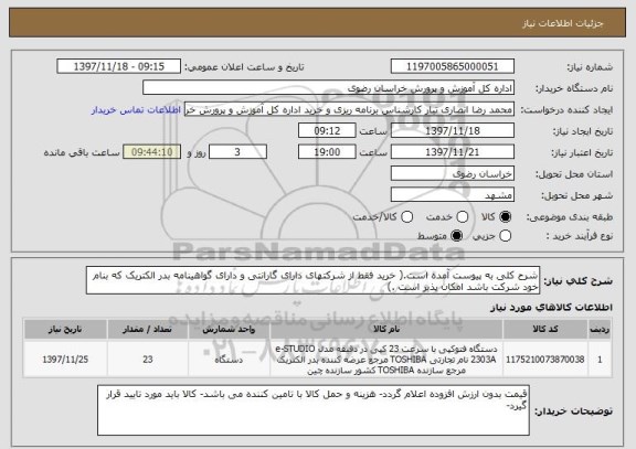 نام دستگاه خریدار:اداره کل آموزش و پرورش خراسان رضوی