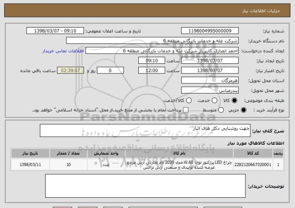 شرح کلی نیاز: جهت روشنایی دکل های انبار