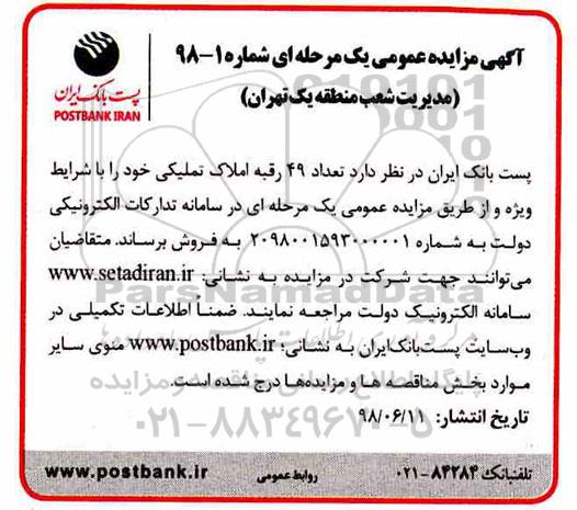 مزایده فروش 49 رقبه املاک تملیکی شماره 98-1
