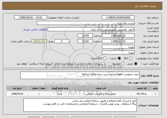 شرح کلی نیاز: خرید سرویس خطوط پشتیبان بی سیم مراکز استانها