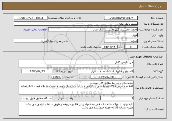 تاریخ پایان اعتبار قیمت: 1398/07/30