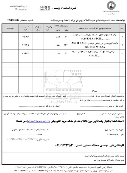 شماره استعلام ES400/044