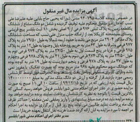 مزایده,مزایده کلاسه 940795 دو دانگ مشاع از ششدانگ زمین بخش 11