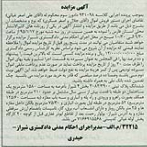 مزایده سه شنبه 95.1.17 ساعت 9:30 الی 10:30