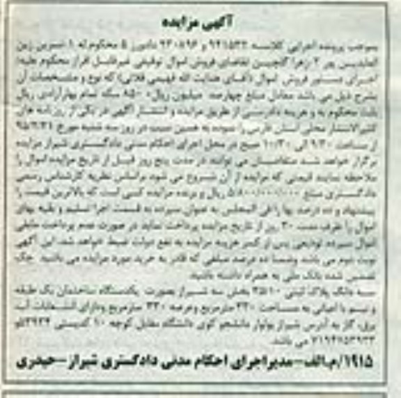 مزایده:95.2.21 سه شنبه ساعت9:30 الی 10:30