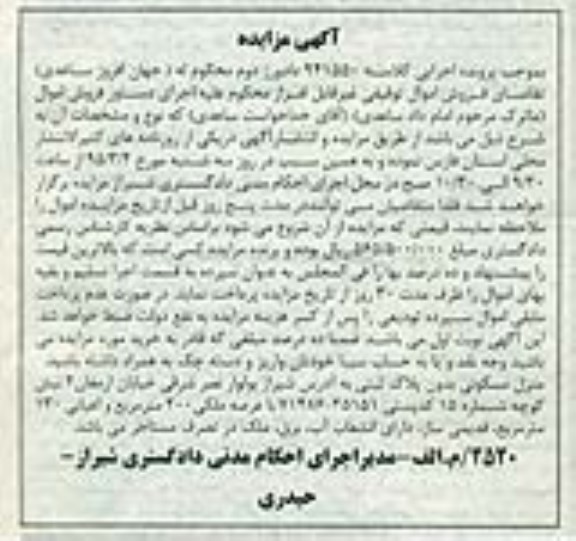مزایده سه شنبه 95.3.4 ساعت 9:30 الی 10:30
