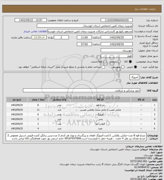 نام دستگاه خریدار:مدیریت درمان تامین اجتماعی استان خوزستان