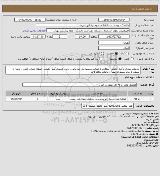 نام دستگاه خریدار:دانشکده بهداشت دانشگاه علوم پزشکی تهران