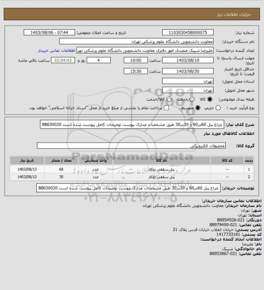 توضیحات خریدار:چراغ پنل 60در60 و 30در30 طبق مشخصات مدارک پیوست توضیحات کامل پیوست شده است 88630020