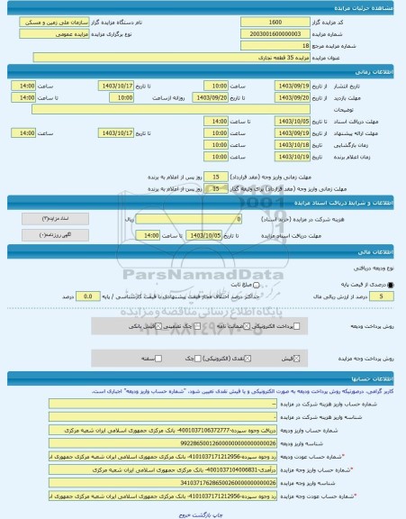 | عنوان مزایده | مزایده 35 قطعه تجاری -مزایده زمین - استان قم | |||