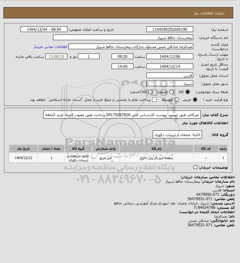 تلفن:5- 88349670 (021) فکس: 88349673 (021) Website: www.ParsNamadData.com E-mail: Info@ParsNamadData.com استعلام میزکانتر طبق لیست، سامانه ستاد، استعلام روز سه شنبه پنجم اسفند ماه 1404