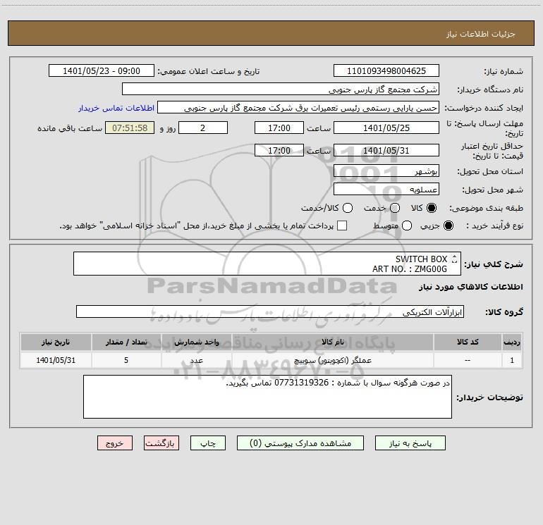 تلفن:5- 88349670 (021) فکس: 88349673 (021) Website: www.ParsNamadData.com E-mail: Info@ParsNamadData.com استعلام SWITCH BOX