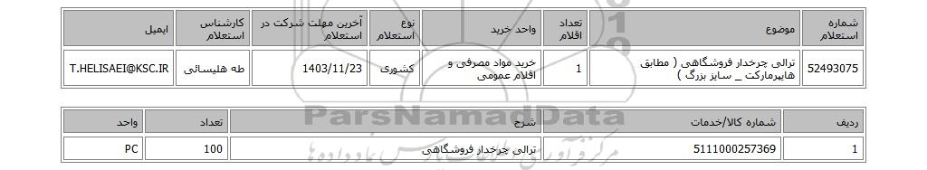 تلفن:5- 88349670 (021) فکس: 88349673 (021) Website: www.ParsNamadData.com E-mail: Info@ParsNamadData.com استعلام ترالی چرخدار فروشگاهی ( مطابق هایپرمارکت _ سایز بزرگ )