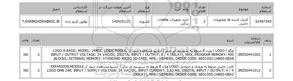 تلفن:5- 88349670 (021) فکس: 88349673 (021) Website: www.ParsNamadData.com E-mail: Info@ParsNamadData.com استعلام کنترل کننده ها وتجهیزات جانبی