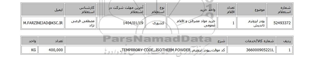 تلفن:5- 88349670 (021) فکس: 88349673 (021) Website: www.ParsNamadData.com E-mail: Info@ParsNamadData.com استعلام پودر ایزوترم تاندیش
