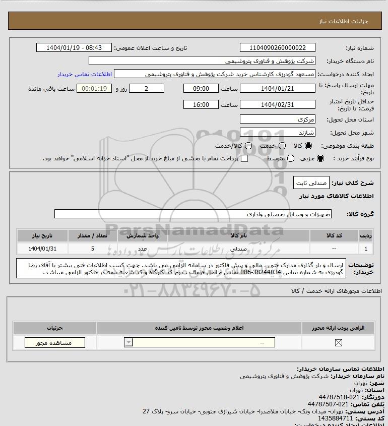 تلفن:5- 88349670 (021) فکس: 88349673 (021) Website: www.ParsNamadData.com E-mail: Info@ParsNamadData.com استعلام صندلی ثابت