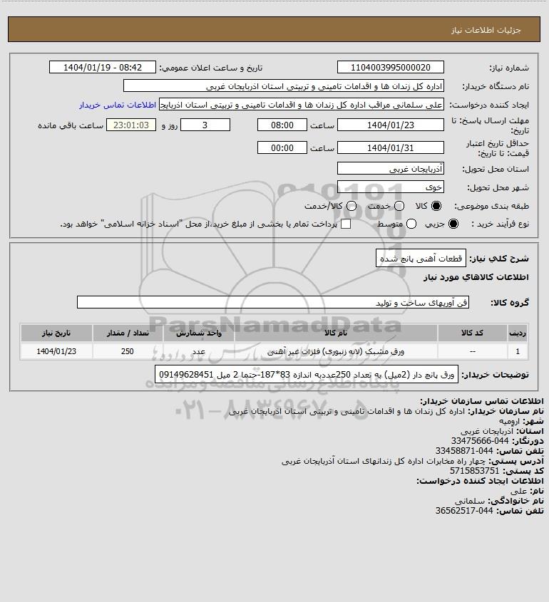 تلفن:5- 88349670 (021) فکس: 88349673 (021) Website: www.ParsNamadData.com E-mail: Info@ParsNamadData.com استعلام قطعات آهنی پانچ شده