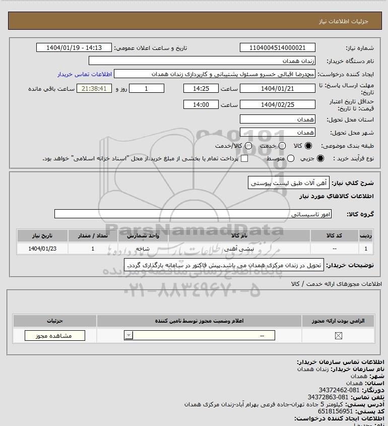 تلفن:5- 88349670 (021) فکس: 88349673 (021) Website: www.ParsNamadData.com E-mail: Info@ParsNamadData.com استعلام آهن آلات طبق لیست پیوستی