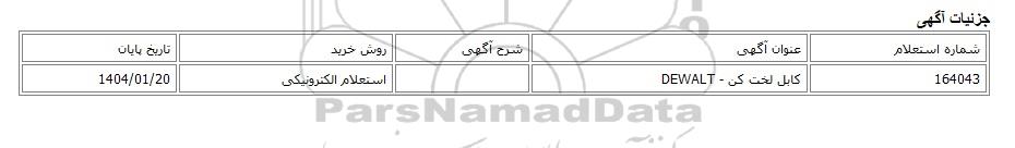 تلفن:5- 88349670 (021) فکس: 88349673 (021) Website: www.ParsNamadData.com E-mail: Info@ParsNamadData.com استعلام الکترونیکی کابل لخت کن - DEWALT