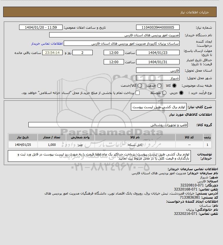 تلفن:5- 88349670 (021) فکس: 88349673 (021) Website: www.ParsNamadData.com E-mail: Info@ParsNamadData.com استعلام لوازم برق کشی طبق لیست پیوست