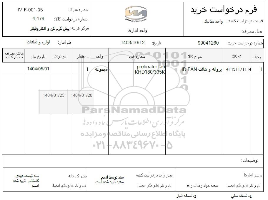 تلفن:5- 88349670 (021) فکس: 88349673 (021) Website: www.ParsNamadData.com E-mail: Info@ParsNamadData.com استعلام پروانه و شافت ID FAN