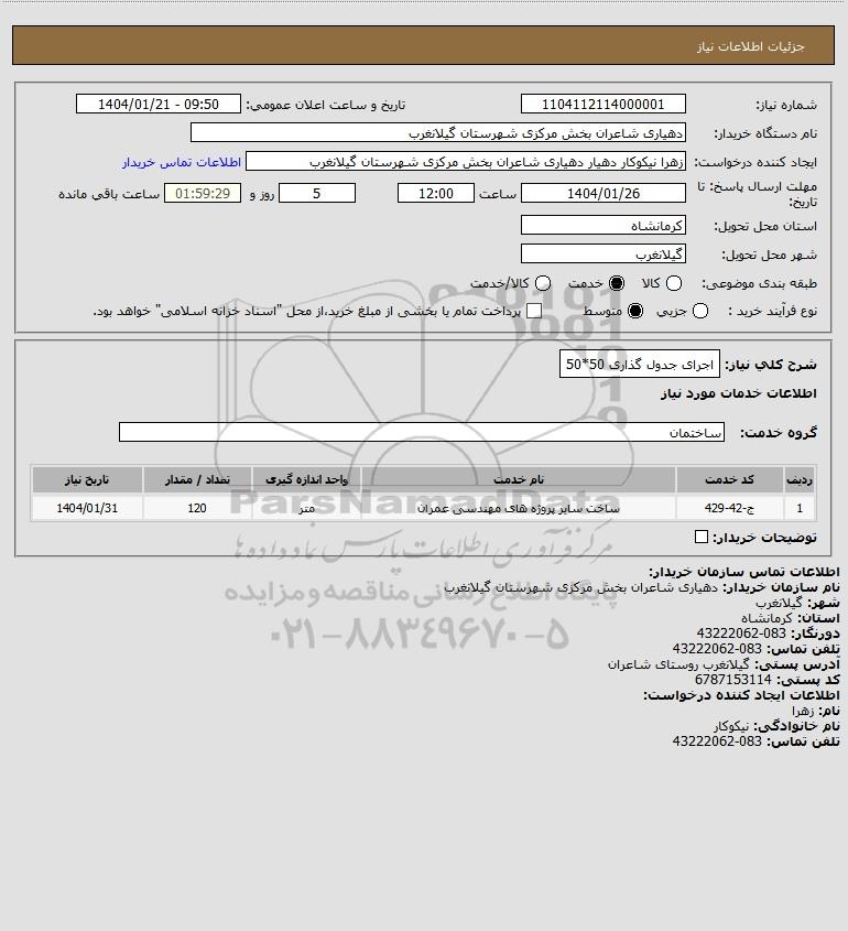 تلفن:5- 88349670 (021) فکس: 88349673 (021) Website: www.ParsNamadData.com E-mail: Info@ParsNamadData.com استعلام اجرای جدول گذاری 50*50