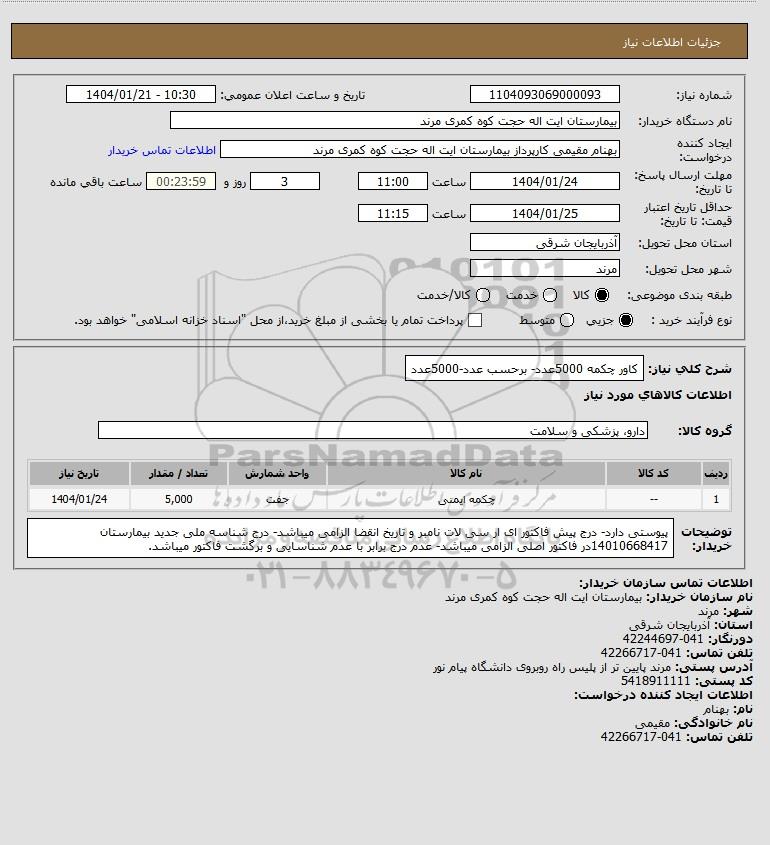 تلفن:5- 88349670 (021) فکس: 88349673 (021) Website: www.ParsNamadData.com E-mail: Info@ParsNamadData.com استعلام کاور چکمه 5000عدد- برحسب عدد-5000عدد