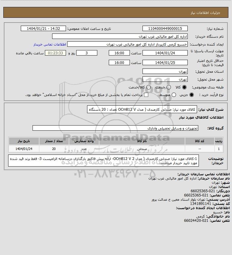تلفن:5- 88349670 (021) فکس: 88349673 (021) Website: www.ParsNamadData.com E-mail: Info@ParsNamadData.com استعلام کالای مورد نیاز: صندلی کارمندی ( مدل OCm812 V