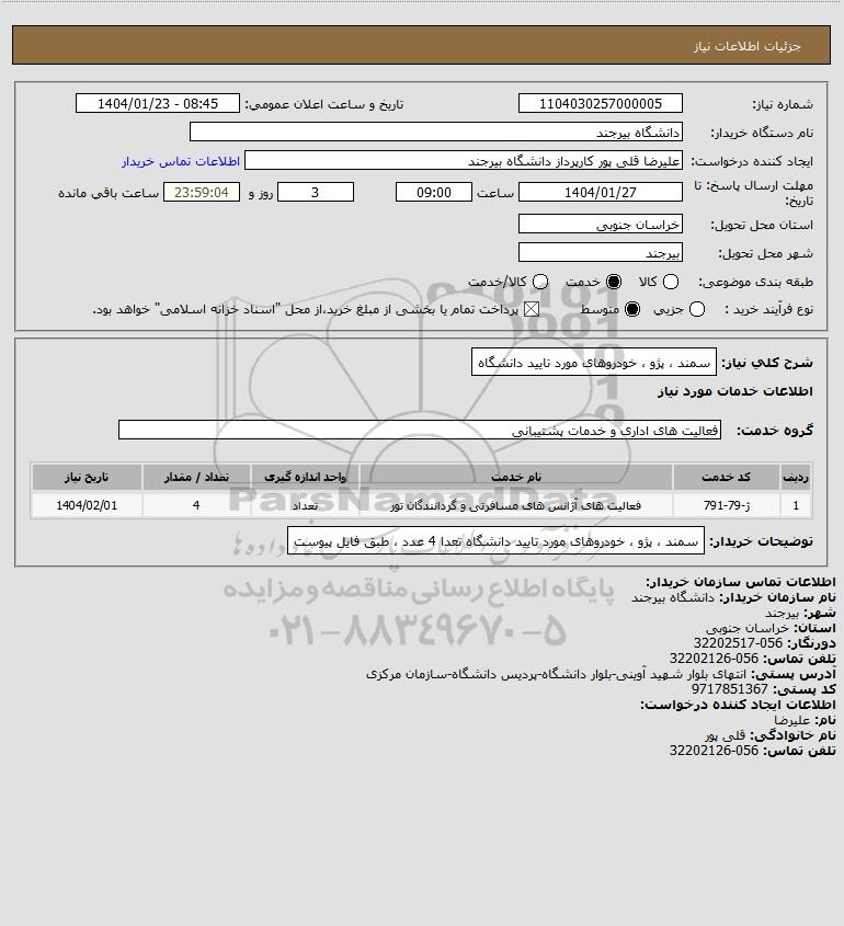تلفن:5- 88349670 (021) فکس: 88349673 (021) Website: www.ParsNamadData.com E-mail: Info@ParsNamadData.com استعلام سمند پژو خودروهای مورد تایید دانشگاه