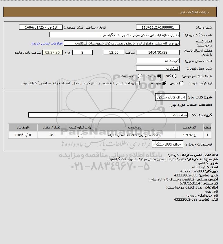 تلفن:5- 88349670 (021) فکس: 88349673 (021) Website: www.ParsNamadData.com E-mail: Info@ParsNamadData.com استعلام اجرای کانال سنگی