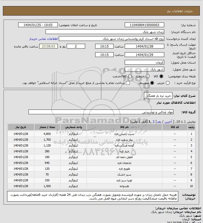 تلفن:5- 88349670 (021) فکس: 88349673 (021) Website: www.ParsNamadData.com E-mail: Info@ParsNamadData.com استعلام خرید تره بار هفتگی