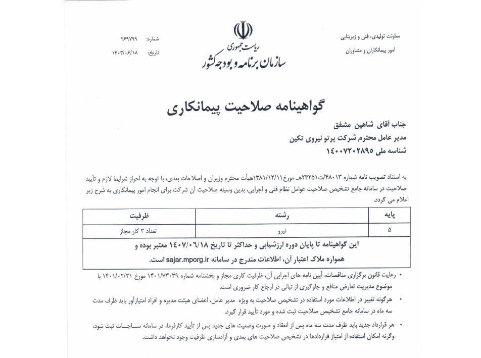 شرکت پرتو نیروی تکین از سال 1396 با پشتوانه دانش و تجربه گروهی از مهندسین آغاز به کار نموده است .