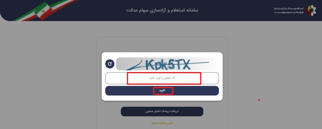 • مرحله بعد، کد تصویری نمایش داده میشود. آن را وارد نموده و سپس تایید را بزنید.