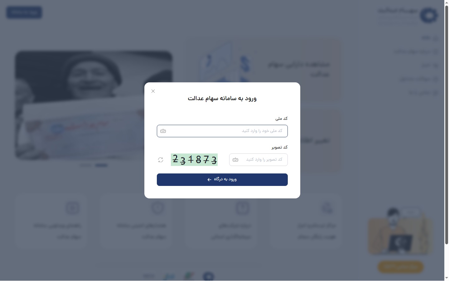 • در پنجره باز شده کد ملی و کد تصویر را در فیلدهای مربوطه درج کنید. سپس دکمه ورود به درگاه را بزنید.