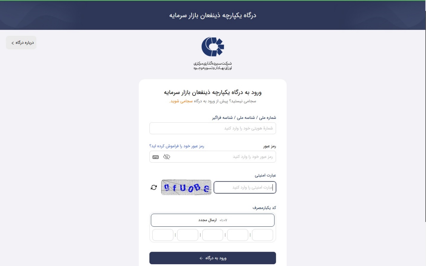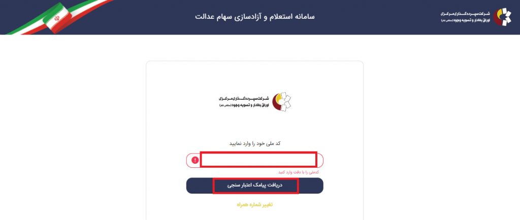 روش دیگر پیگیری وضعیت سهام عدالت با کد ملی، ورود به درگاه یکپارچه ذینفعان بازار سرمایه به نشانی اینترنتی ddn.csdiran.ir/auth/login است.