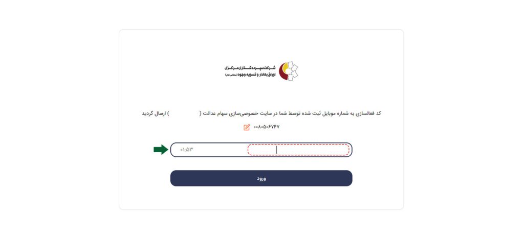 • کد فعالسازی ارسال شده به تلفن همراه را در کادر مربوطه درج نمایید.
