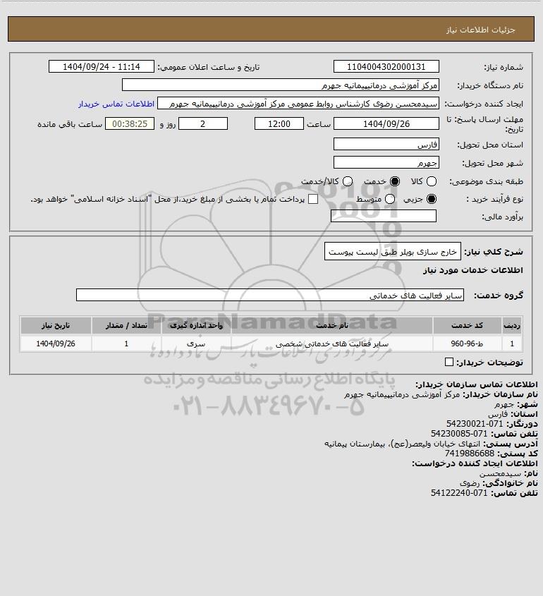 شرح کلی نیاز: خارج سازی بویلر طبق لیست پیوست