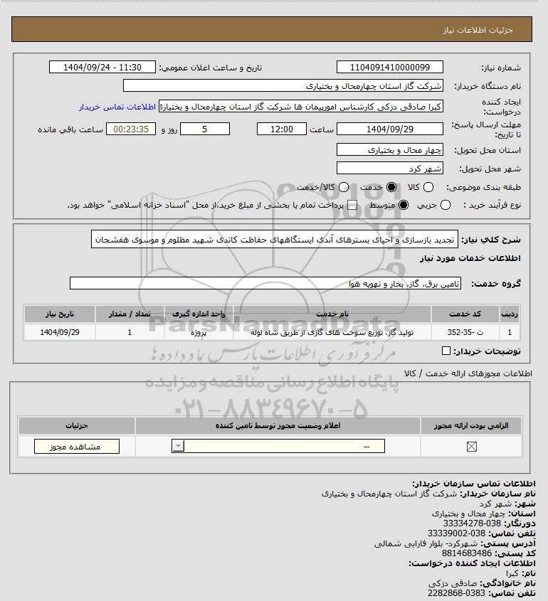 نام دستگاه خریدار:شرکت گاز استان چهارمحال و بختیاری