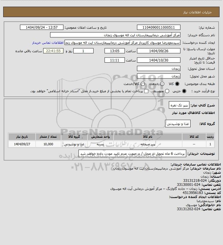 | 1 | -- | پنیر صبحانه | بسته | غذا و نوشیدنی | 10,000 | 1404/09/27 |