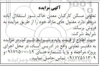 تعاونی مسکن کارکنان معدن خاک نسوز استقلال آباده در نظر دارد مفتول های مازاد خود را از طریق مزایده به فروش برساند.