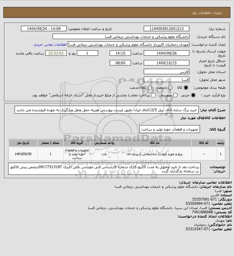 استعلام خرید برگ سازهکناف پنل 12/5کناف ایران طبق لیست پیوستی هزینه حمل ونقل وبارگیری به عهده فروشنده می باشد, استعلام خرید برگ سازه،کناف ،پنل 12/5کناف ایران ،طبق لیست پیوستی هزینه حمل ونقل وبارگیری به عهده فروشنده می باشد