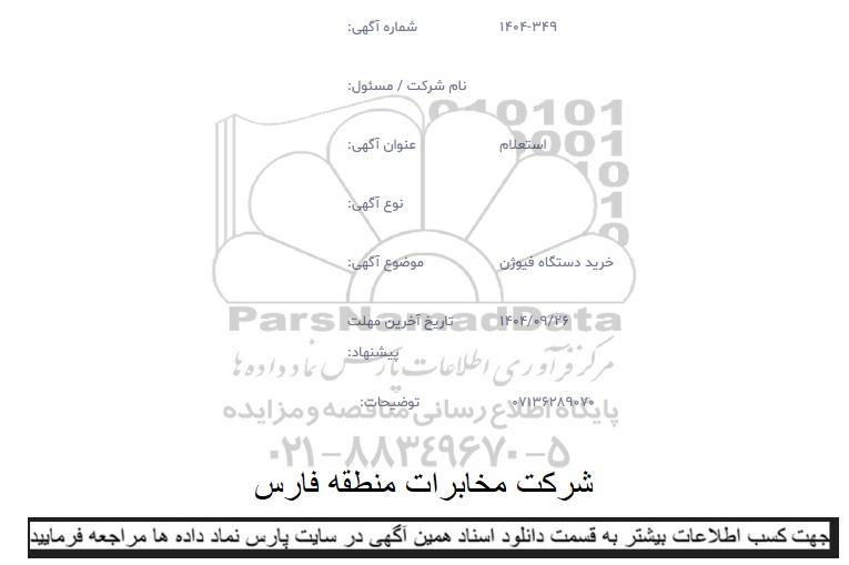 موضوع آگهی: خرید دستگاه فیوژن