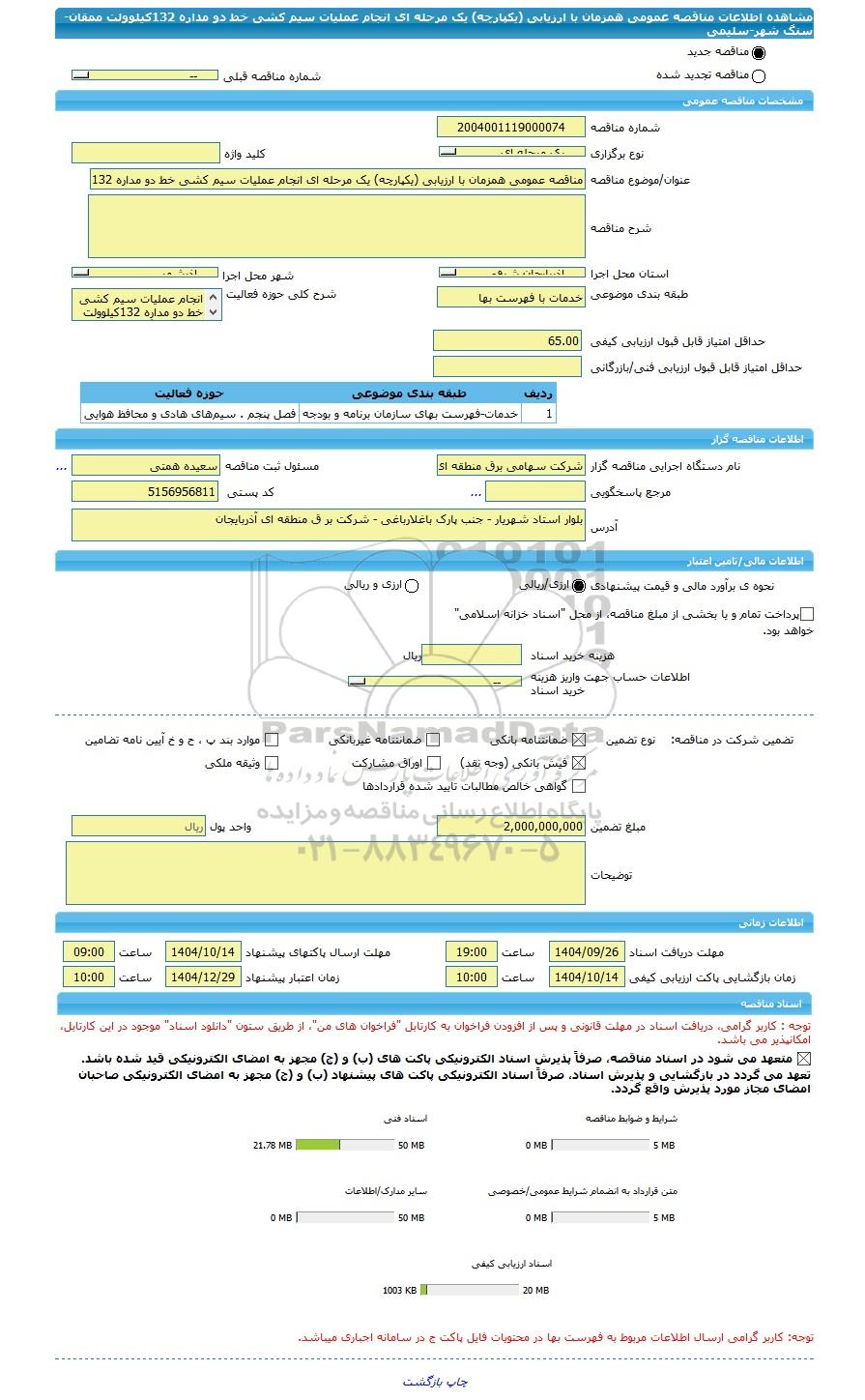 | مبلغ تضمین | 2,000,000,000 | واحد پول | ریال |