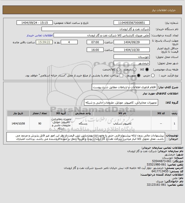 شرح کلی نیاز: اقلام فناوری اطلاعات و ارتباطات مطابق شرح پیوست