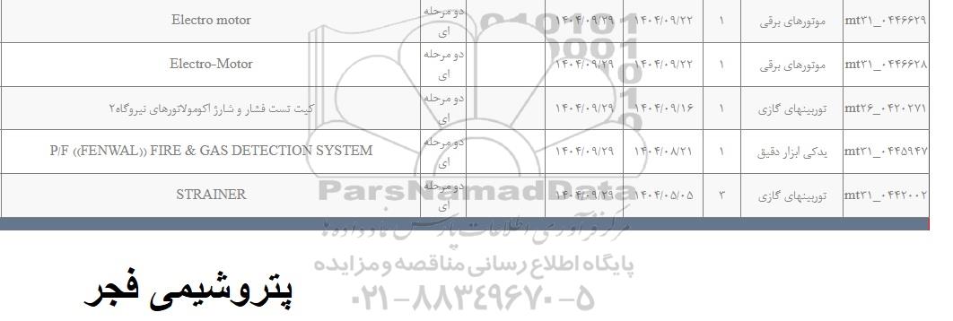 mt31-0445947 یدکی ابزار دقیق 1 1404.8.21 1404.9.29 دو مرحله ای P/F (FENWAL)) FIRE & GAS DETECTION SYSTEM
