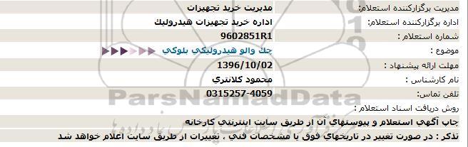 اداره برگزارکننده استعلام: اداره خرید تجهیزات هیدرولیک