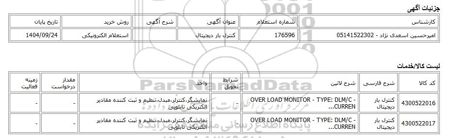 امیرحسین اسعدی نژاد - 05141522302176596کنترل بار دیجیتالاستعلام الکترونیکی1404/09/24