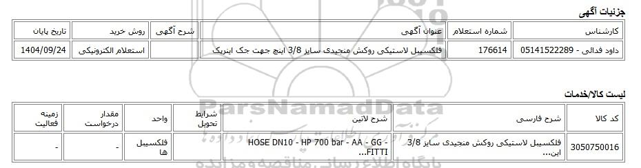 داود فدائی - 05141522289176614فلکسیبل لاستیکی روکش منجیدی سایز 3/8 اینچ جهت جک اینرپکاستعلام الکترونیکی1404/09/24